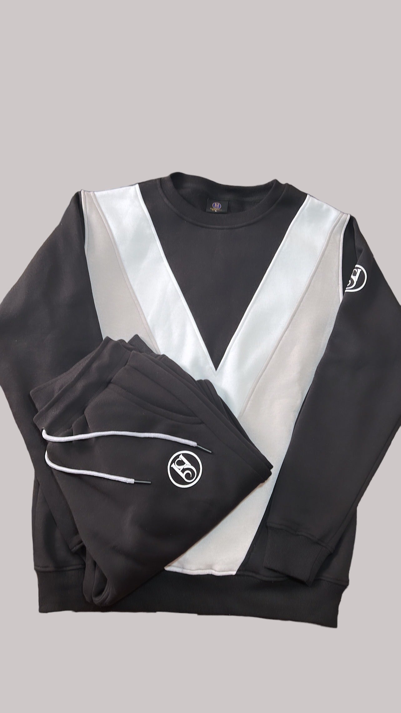 The top features two black zippers for your hands. Pants feature a gray drawstring to add flair. Both top and bottom have H.S. logo on left side.